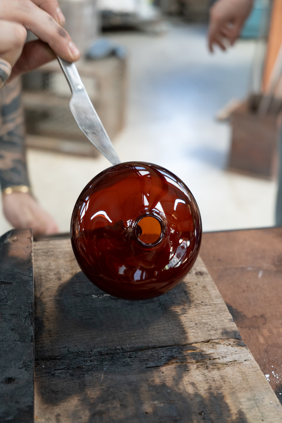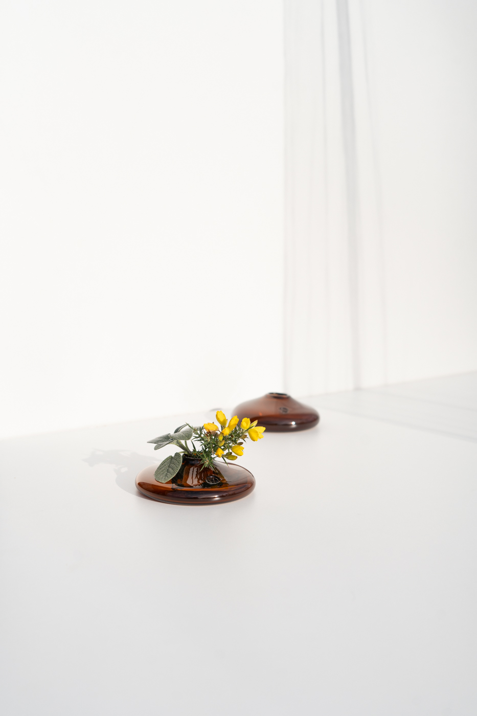 Le Verre des îles du Ponant est un verre inter-îles fabriqué à partir des coproduits de différentes filières implantées sur ces îles. Composé de sable d’excavation issus de la création de logements sociaux sur l’île d’Hoedic (2022), de filtres de plongée d’un scaphandrier Ouessantin (Scaph Eusa) et de cendres de fumaisons de poisson (Fumaisons de l’île de Groix), le nouveau verre des îles du Ponant nous ramène les pieds sur terre avec sa couleur cuivrée puissante.