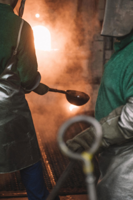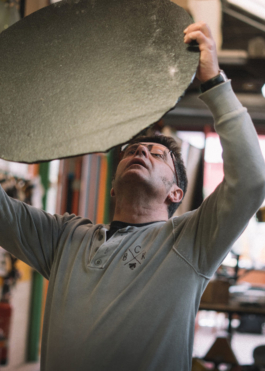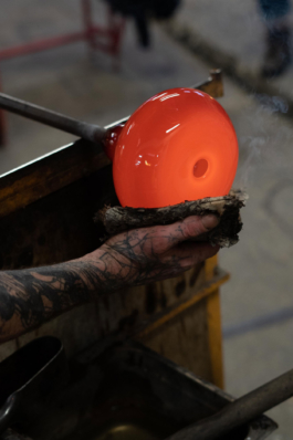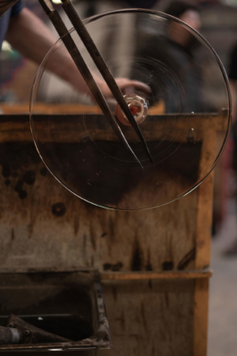 Le verre de Rouergue a été fusionné en mars 2019 à la verrerie de Saint-Just, dernière manufacture à détenir le savoir-faire d'exception de la fabrication du verre plat artisanal : étirés et fendus, les "manchons" soufflés à la bouche sont aplatis à chaud à la main.