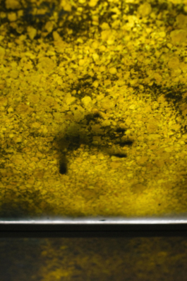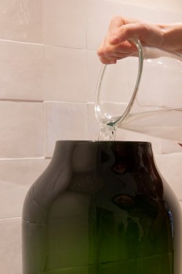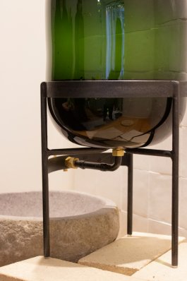 Développé en 2019, le Verre de Rouergue est formulé à partir de « matériaux rescapés » des paysages d’Aveyron : sable du Lot recueilli en 1976 dans le hameau de Montarnal, cendres de bois de chauffage de la vallée de la Truyère, coquilles d’escargots confiées par Thierry Ollitrault, un héliciculteur local. Sa couleur d’ambre nous emmène sur les berges du Lot voir le sable dans les profondeurs du fleuve.