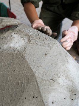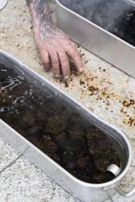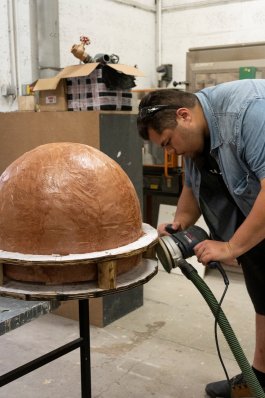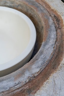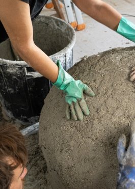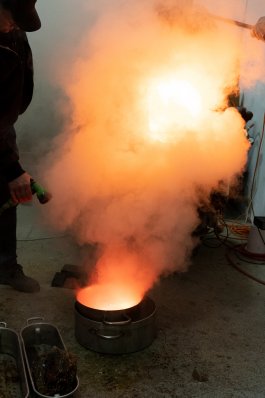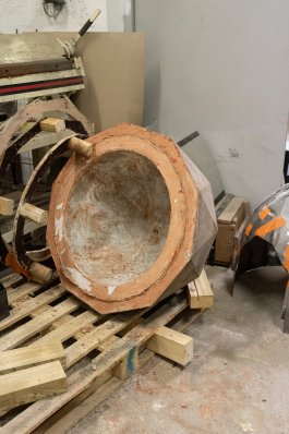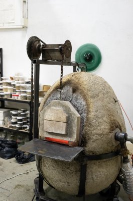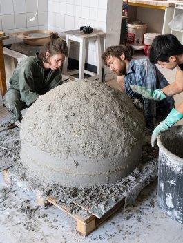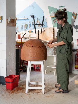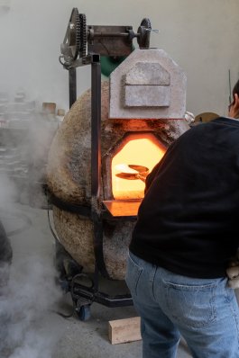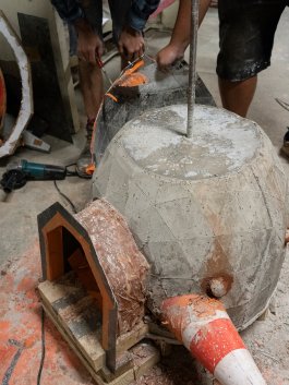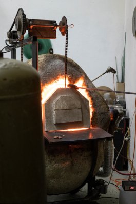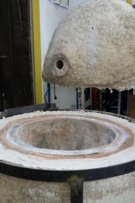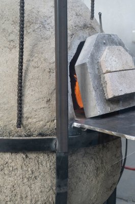 L’ultime étape de la production de ces outils a été l’élaboration et la construction d’un four verrier ovoïdal, propice à une bonne circulation de la flamme (et donc à une économie d’énergie), affirmant notre volonté de défendre la rétro-innovation et puisant son inspiration dans les archives de l’histoire du verre et dans les principes d’éco-construction.