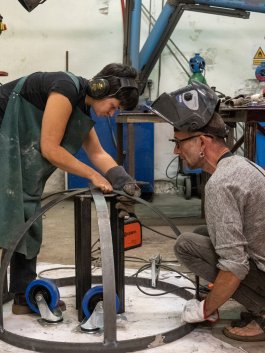 En partenariat avec l’EESAB et l’ENIB, sous le prisme de la pensée low-tech (basse technologie), nous avons imaginé une série de machine pour la mise en place d’une filière artisanale itinérante avec comme ordre d’actions : récolter, nettoyer, sécher, concasser, broyer, tamiser, mélanger, fusionner, réchauffer puis souffler…