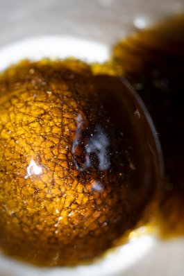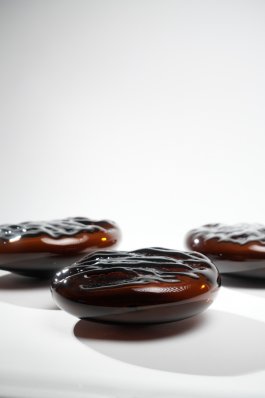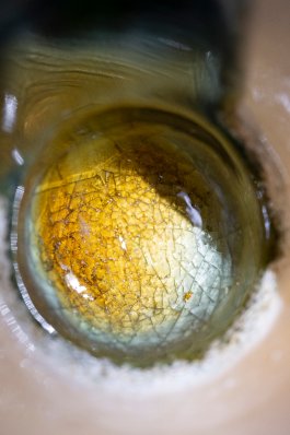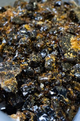 Au fil des 35 matières recensées sur les îles et testées en laboratoire, le verre des îles du Ponant a arboré une multitude de teintes. Progressivement, l’intégration des cendres de fumaisons de poisson des conserveries comme fondant ont emmené le verre vers l’ambre.