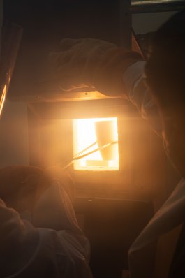 En janvier 2023, les 5 premiers kilos de ce nouveau verre ont été dédié à une résidence étudiante organisée avec notre partenaire depuis les prémices du projet, l’École Européenne Supérieure d’Arts de Bretagne. Au sein de l’atelier d’Alan Le Chenadec (BO Glass Studio) et entourés des Verreries de Bréhat et de la Verrerie Fluïd, 7 projets ont pris forme pendant une semaine de partage autour du four ovoïdal mobile fabriqué pour le projet.